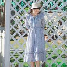 2017夏装新款文艺小清新雪纺连衣裙女夏印花小碎花裙子学生中长款