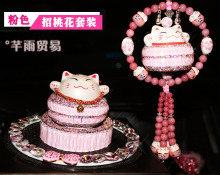 包邮新款礼物招财猫车挂饰品挂件汽车水晶后视镜可爱车载挂饰玛瑙