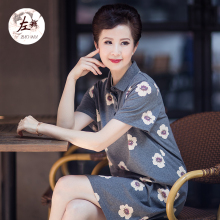 左舞妈妈装夏装短袖印花连衣裙中老年女装A字裙显瘦大码及膝裙