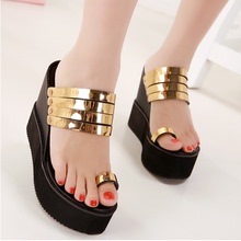 2017夏季坡跟凉拖鞋女 超高跟防水台厚底女鞋性感金属环鱼嘴凉鞋