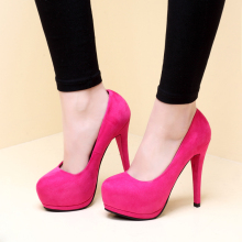 超高跟鞋 细跟圆头时尚女单鞋 高跟绒面防水台浅口春秋女鞋 女夏