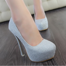 超高跟鞋婚鞋 细跟防水台高跟女单鞋2017春季新款圆头鞋 女夏秋鞋