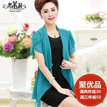中老年女装夏装中年妇女大妈妈装修身连衣裙两件套雪纺短袖披肩裙