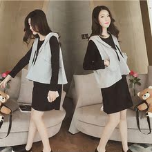 春季新款套头卫衣女连帽中长款宽松马甲套装韩版潮学生带帽外套薄