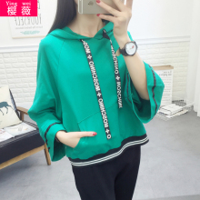 韩版少女2017春装新款连帽宽松套头卫衣女中学生胖MM时尚休闲上衣
