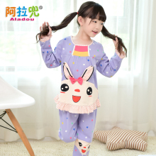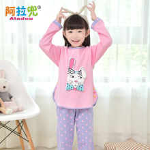 阿拉兜春季儿童睡衣 女童纯棉睡衣 长袖长裤女孩大童家居服套装