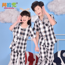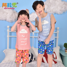 阿拉兜儿童睡衣女夏纯棉短袖长裤空调服 中大童男童家居服套装
