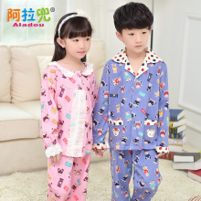 阿拉兜儿童睡衣 春季卡通长袖长裤纯棉家居服 小男孩女童宝宝套装