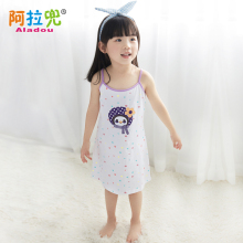 2017新款夏季女童吊带睡裙莱卡棉薄款女孩睡裙儿童睡衣亲子家居服