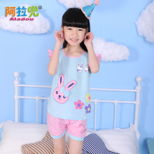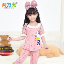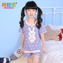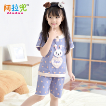 中大女童睡衣夏款纯棉短袖宝宝空调服睡衣儿童家居服睡衣夏套装