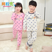 春秋款莱卡棉儿童内衣中大童女童男童秋衣秋裤家居服睡衣宝宝套装