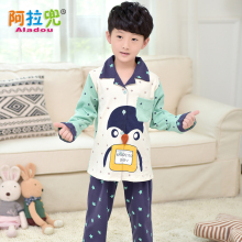 阿拉兜春季纯棉长袖开衫卡通儿童睡衣 男童男孩宝宝家居服套装
