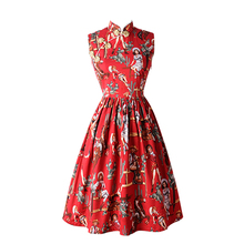 夏季连衣裙无袖高腰款气质淑女纯棉印花复古大摆裙显瘦公主中裙