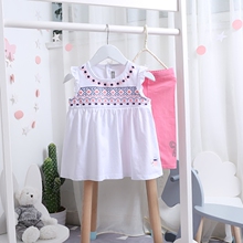 羊妈家 童装女宝夏装T恤 女童飞袖T民族风刺绣 儿童纯棉娃娃衫