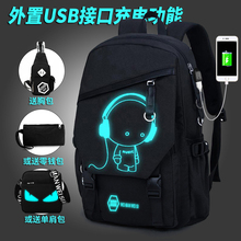 春季书包韩版夜光充电书包男时尚潮流书包双肩包男中学生背包988