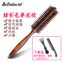 creative art猪鬃毛梳卷发梳子滚梳内扣吹直发梨花头造型梳圆筒梳