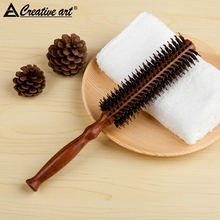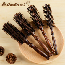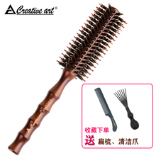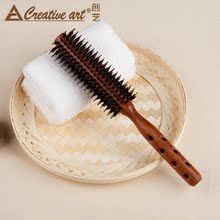 creative art正品猪鬃毛滚梳直发内扣造型卷发梳子圆筒实木梳包邮