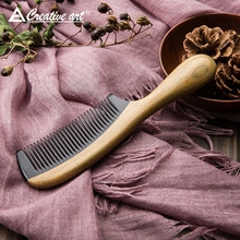 creative art绿檀木牛角梳子防静电头皮按摩直发卷发送好友礼品梳