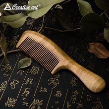 creative art绿檀木梳子防静电卷发直发按摩梳送家人送女友礼品梳