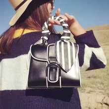 2017新款欧美时尚马鞍包百搭丝巾锁扣撞色手提包女休闲单肩斜挎包