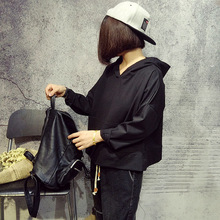 禹儿世家2016秋季新品韩版连帽纯色长袖短款帽衫女外套弹力宽松