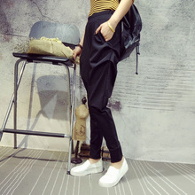 2016秋冬宽松韩版女装松紧腰弹力显瘦小脚哈伦裤女休闲长裤黑色