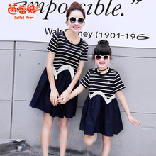 2017新款潮亲子装夏装牛仔裙子 童装休闲裙母女装短袖牛仔连衣裙