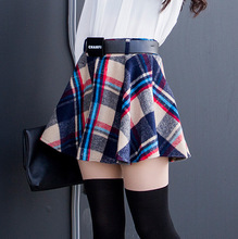 女2016秋冬季新款格子学院风修身蓬蓬毛呢半身短裙A字伞裙配皮带