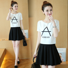2017夏季新款女装韩版潮小清新雪纺两件套休闲短裙时尚宽松套装裙