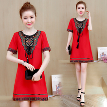 2017夏季韩版宽松短袖胖MM民族风刺绣中长款连衣裙A字裙大码女装