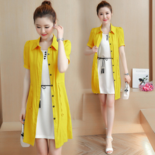 2017夏季新款韩版宽松显瘦短袖衬衫背心裙两件套连衣裙女棉麻套装