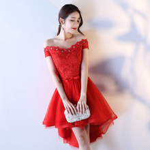 新娘敬酒服2017新款春夏季红色一字肩短款显瘦结婚晚礼服连衣裙女