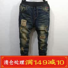 男宝宝儿童童装秋装小脚韩版潮装男童裤子牛仔裤破洞裤补丁长裤潮