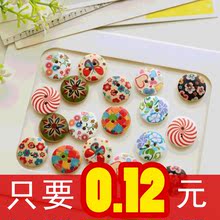 手工diy辅料 可爱清新花纹小木扣 扣子 纽扣 直径1.8cm 一口价1个