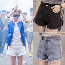 夏季新款白色牛仔短裤女学生毛边韩版宽松百搭高腰显瘦阔腿热裤潮