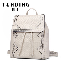 图丁2017新款学院风编织铆钉双肩包女韩版潮女书包真皮背包女包袋