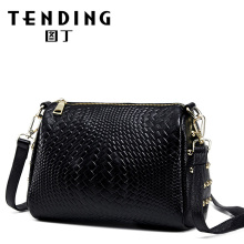 2016夏新款时尚铆钉编织纹女包斜挎枕头包真皮单肩斜跨女式小包包