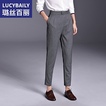 璐丝百丽黑色哈伦裤女长裤春秋OL职业西裤宽松直筒休闲裤正装裤子