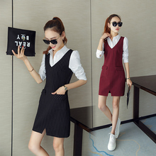 2017春季新款女衬衫连衣裙假两件格子拼接长袖修身两件套时尚套装