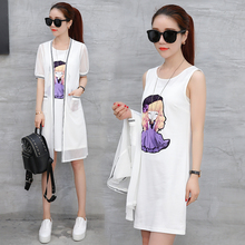 裙子女夏披肩外套中长款雪纺两件套夏天连衣裙时髦套装体恤背心裙