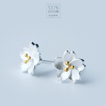 925纯银日系甜美樱花耳钉防过敏森女手工闺蜜饰品