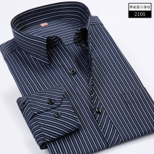 秋装男士长袖条纹衬衫中老年爸爸装棉质商务休闲中年大码免烫衬衣