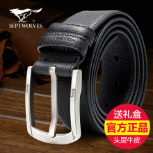 七匹狼皮带男针扣 纯牛皮青年牛仔裤带 男士腰带商务头层牛皮