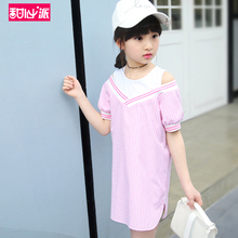 女童连衣裙2017新款夏季条纹短袖童装韩版中大儿童时尚潮衣公主裙