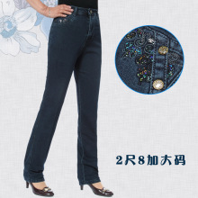 春装中老年女裤休闲长裤子中年人妈妈装高腰直筒加肥加大码牛仔裤