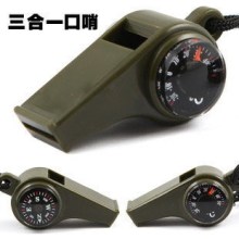促销三合一指南针救生哨温度计救生哨户外口哨带挂绳 多功能口哨