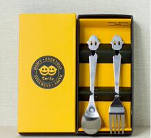 环保韩式便携餐具两件套装不锈钢开心小笑脸勺子叉子镂空餐具礼盒