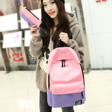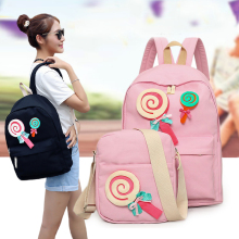 2016夏季帆布双肩包女日韩学院风三件套旅行背包印花初中学生书包