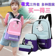 可爱夜光卡通日韩版帆布潮小学生双肩包男学院背包初中学生书包包