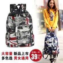 新款韩版米字国旗帆布双肩包涂鸦欧美风潮男女学生书包背包电脑包